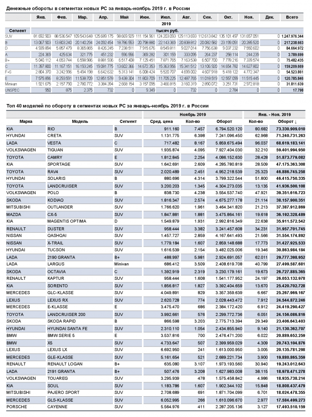 ![Рейтинг по выручке с продаж автомобилей за ноябрь 2019 года]()