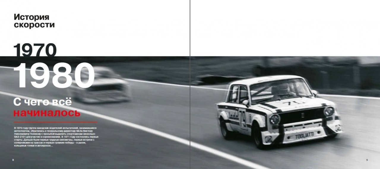 АВТОВАЗ выпустил книгу об истории гоночных болидов LADA и о своем участии в автоспортивных соревнованиях. 275-страничная «История скорости» содержит около 400 фото, многие из которых опубликованы впервые. В 39 главах рассказывается обо всех спортивных моделях Lada — от ВАЗ-2101 «Ралли» начала 1970-х годов и до современных автомобилей для кольцевых гонок Vesta TCR. Об этом пишет drom.ru