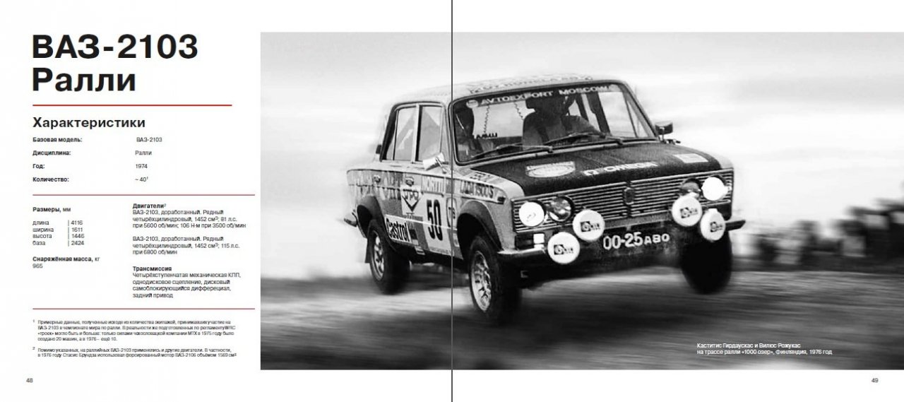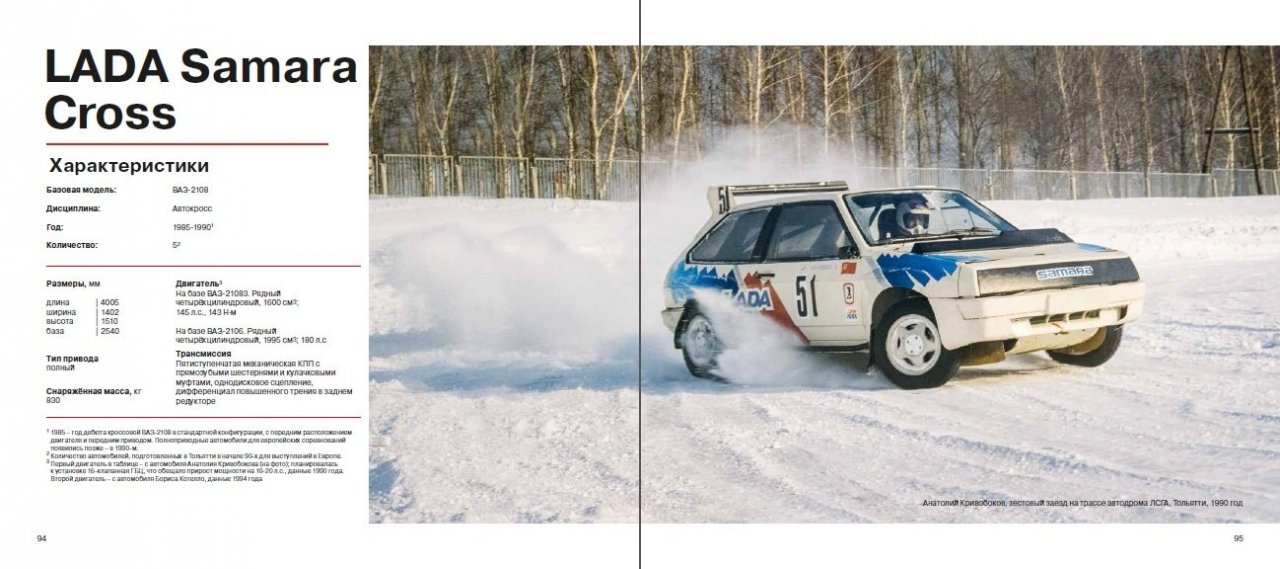В книге показан весь спектр Lada для профессионального автоспорта — и те машины, что готовил сам АВТОВАЗ, и те, что строили сторонние коллективы из СССР и Европы. Охвачены все дисциплины автоспорта: ралли, кросс, ралли-кросс, трековые и кольцевые гонки. Приведены подробные технические характеристики, особенности конструкции, малоизвестные факты и истории. В издании собраны все исторически важные достижения советских, российских и зарубежных гонщиков за рулем автомобилей Lada.