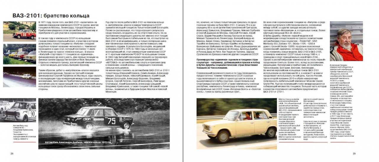 В подготовке книги принимали участие легендарные спортсмены: Александр Нуждин, Юрий Кацай, Борис Маслов, Борис Котелло, Александр Долбиш, Стасис Брундза и многие другие. Текст написан журналистом Иннокентием Кишкурно, в качестве технического консультанта выступал автоспортивный историк Андрей Гущин. За подготовку иллюстраций отвечал фотограф Андрей Холмов, а дизайн и верстку книги выполнил Александр Патрушев, дизайн-студия «ИНТРА».