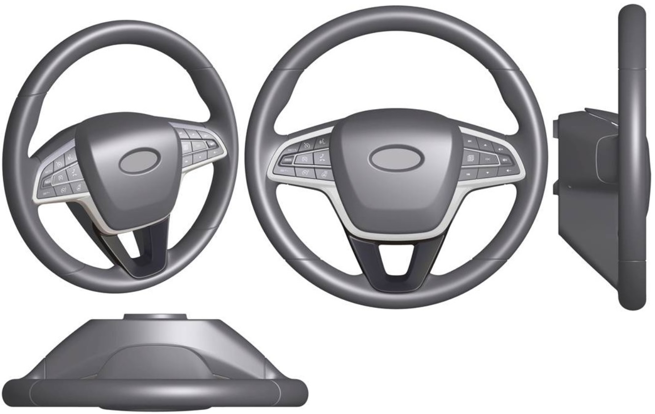 Рулевое колесо для легкового автомобиля представлено в двух вариантах. Первый вариант руля предназначен для простых комплектаций и имеет минимальный набор кнопок.