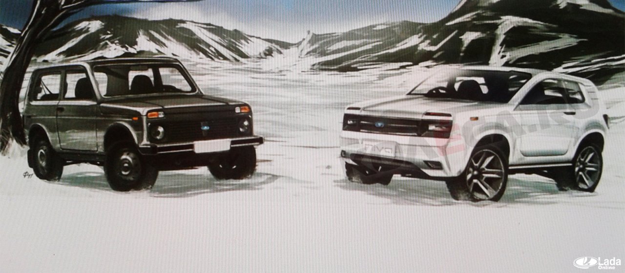 Источник, который предоставил иллюстрацию, не сообщил, какой автомобиль изображён на ней — так видели в 2014 году следующее поколение Lada 4x4 или же рестайлинг внедорожника. На фото обновленный автомобиль имеет горизонтальные фары, которые делают Ниву визуально шире, а купеобразная линия крыши делает модель современной и брутальной. Обратите внимание, что у обновленной версии более низкий бампер и руль с правой стороны!