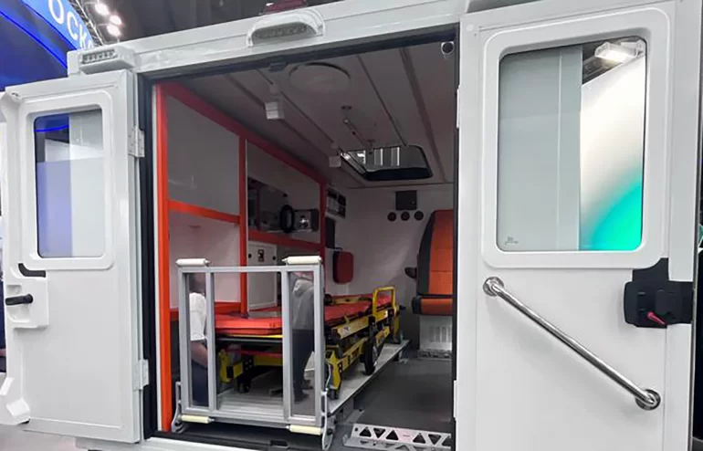 - Первый ориентирован на экстренную транспортировку пациентов на небольшие расстояния. Он маневренен, обладает уменьшенными весогабаритными характеристиками и подходит для использования в условиях повышенного скоростного режима. Также транспорт оснащен опцией капсулы - внутренней стенкой для большей безопасности медиков и пациента.