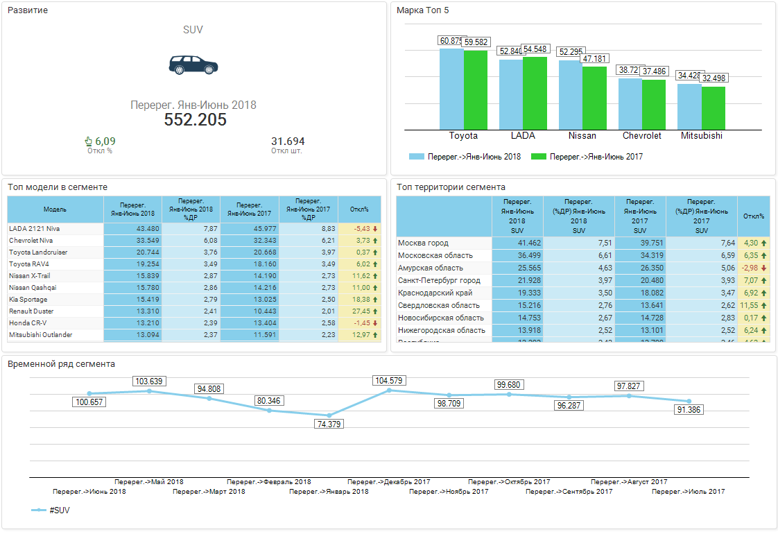 Эксперты аналитического агентства «АВТОСТАТ» провели исследование российского вторичного рынка автомобиля. В период с января по июнь 2018 года в в нашей стране было продано 548 тыс. подержанных кроссоверов и внедорожников (SUV), что на 7% выше результата годичной давности. Лидером вторичного рынка в сегменте SUV традиционно является вазовский внедорожник LADA 4x4.