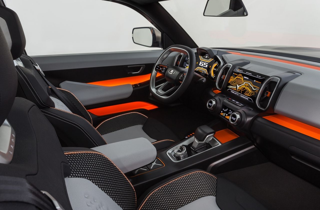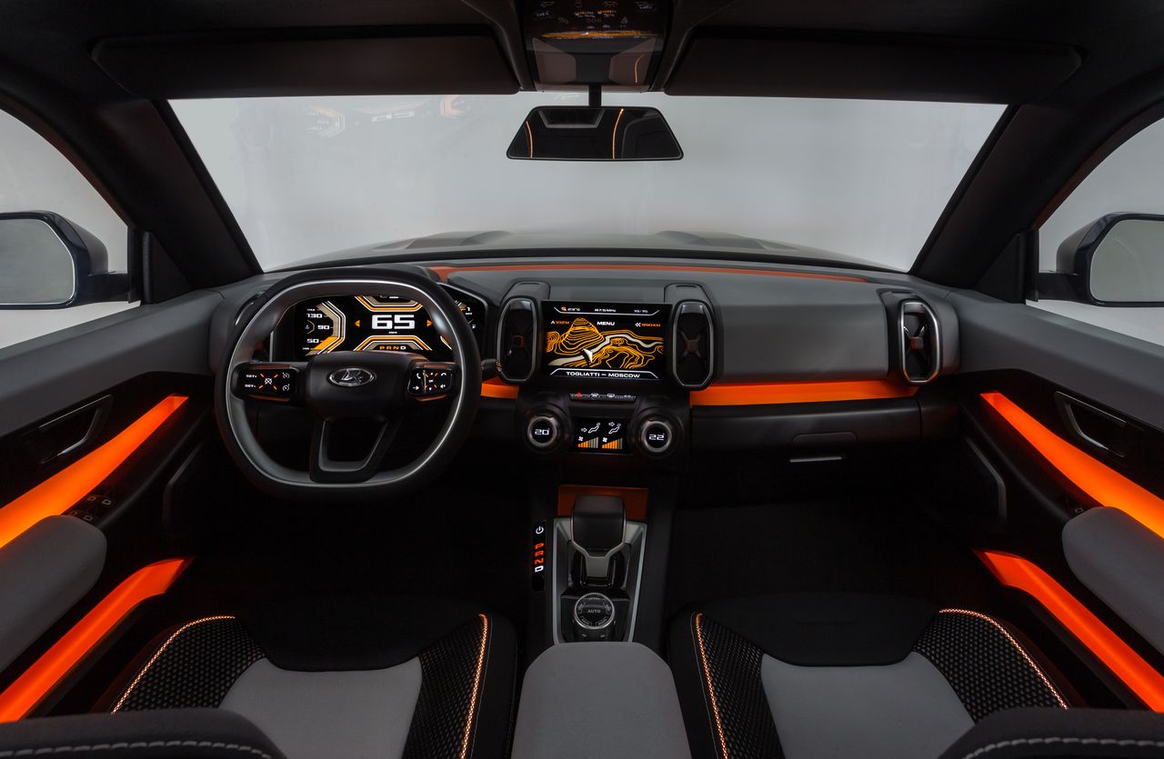 LADA 4х4 VISION является ярким примером высокотехнологичного автомобиля, обеспечивающего своих пассажиров полным набором цифровых систем для передвижения по бездорожью, которые дарят водителю совершенно новый опыт безопасного вождения в экстремальных условиях. 2 больших парящих цифровых экрана предоставляют водителю и пассажирам всю необходимую информацию. Расположенная за рулевым колесом основная комбинация приборов имеет ИКС-образную форму, информация передается при помощи легко считываемой графики. Центральный экран с набором он-лайн и оф-лайн сервисов помогает всем находящимся на борту с успехом преодолевать любые городские квесты. Атмосферная подсветка салона не только функциональна, она создает в салоне свой удивительный внутренний мир.