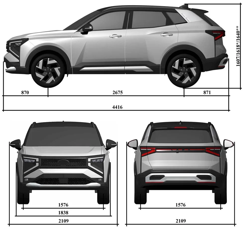 | Длина / ширина / высота (по антенне), мм | 4416 / 1838 / 1607 | 4416 / 1838 / 1607 | 4416 / 1838 / 1607 |