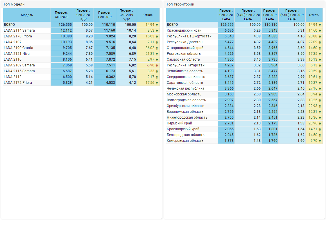 По данным аналитического агентства «АВТОСТАТ», в первый осенний месяц 2020 года объем рынка легковых автомобилей с пробегом в России составил почти 565 тыс. единиц. Это на 24,2% больше, чем год назад. В марочной структуре этого рынка лидерство по-прежнему принадлежит российской LADA – на ее долю приходится порядка 23% от общего объема перепродаж легковых автомобилей, или 128,1 тыс. штук в количественном выражении. Это на 14,6% превышает показатель сентября 2019 года.