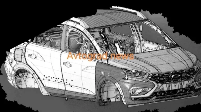 Обн.16.03.2023: Группа «Avtograd news» в социальной сети опубликовала фото кузова и передней панели автомобиля XJO (новая модель B-класса, которая заменит Гранту). Паблик пишет, что панель приборов (торпедо) унифицирована с панелью HJN (Нива на платформе Renault).