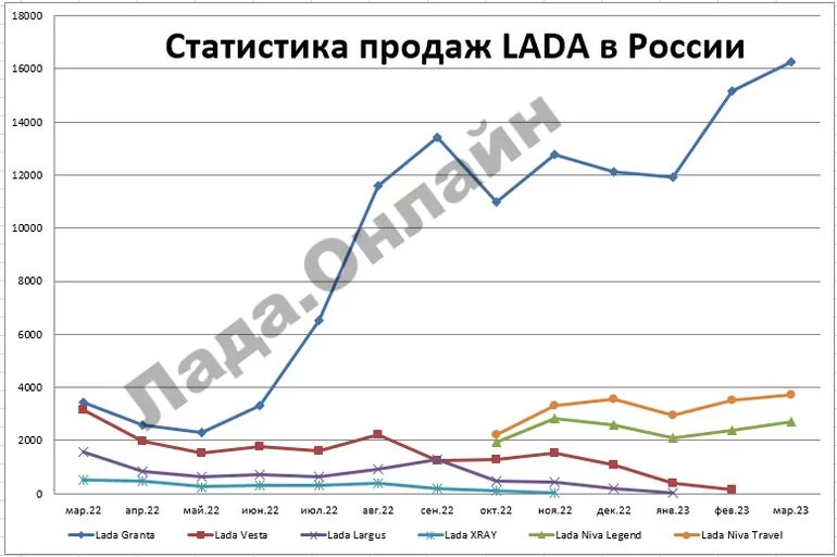 ![Статистика продаж автомобилей LADA за март 2023 года]()
