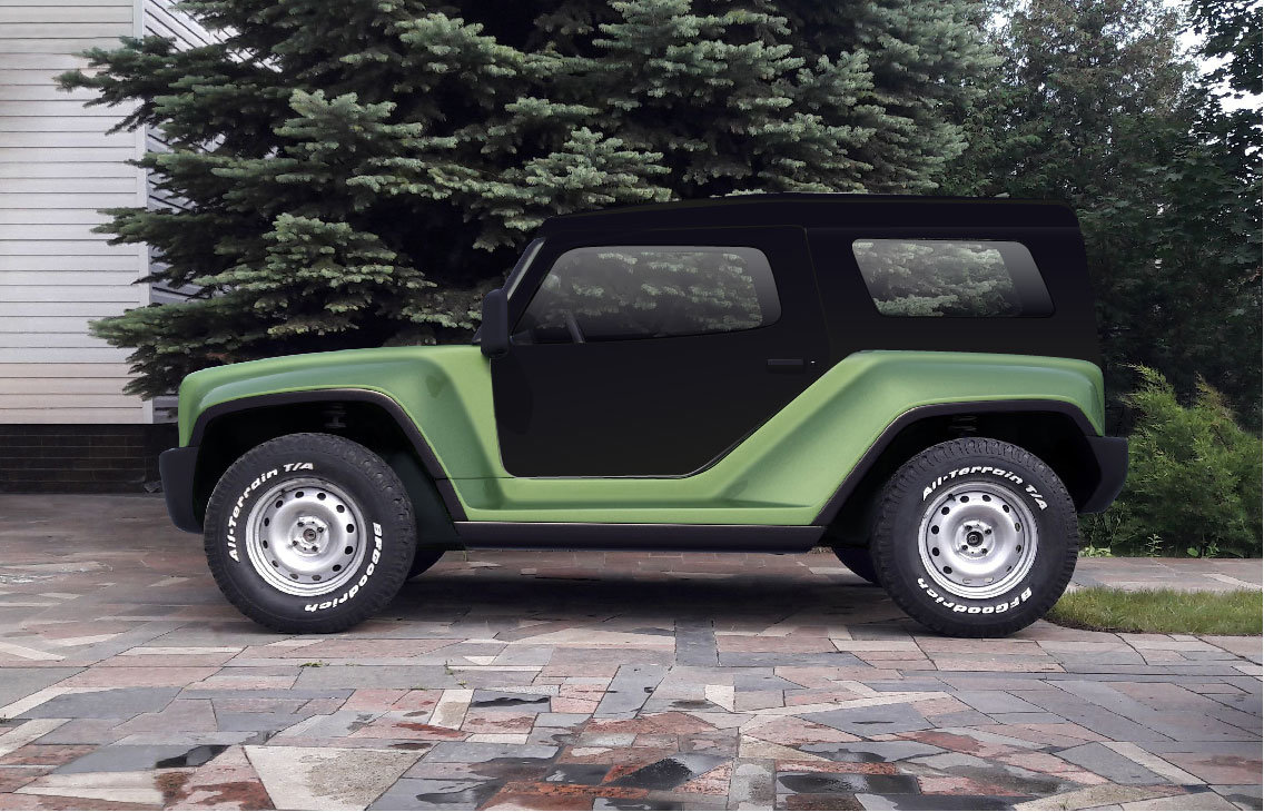 У багги планируется несколько вариантов верхней части кузова в зависимости от назначения. В одном случае это может быть пляжный багги, в другом - легкий фермерский грузовик.