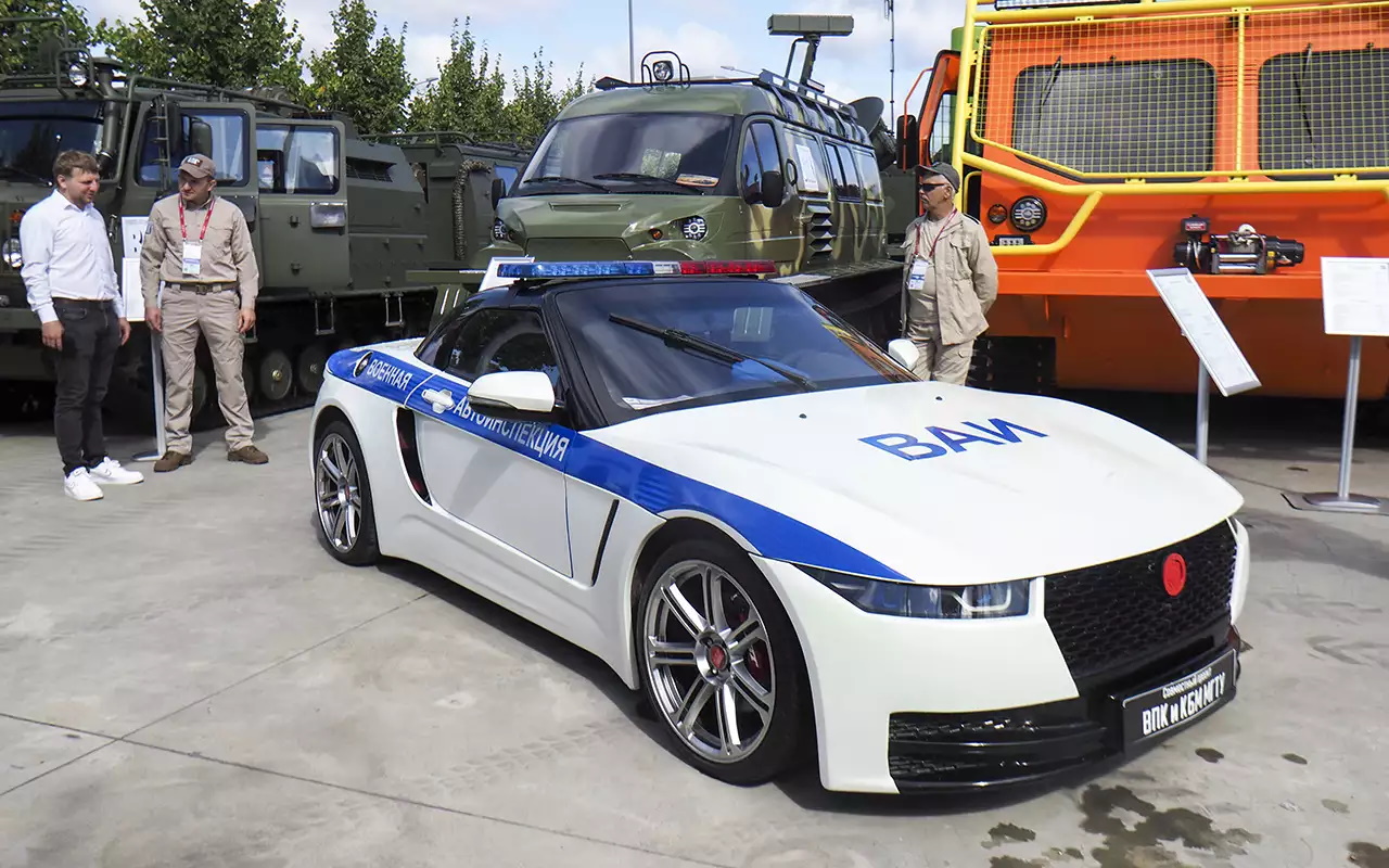 "Военно-промышленная компания (ООО "ВПК") и Конструкторское бюро молодежи (КБМ) представили на форуме "Армия-2021" родстер "Крым" в раскраске Военной автомобильной инспекции (ВАИ), который предлагают использовать для поддержания порядка на дороге. Родстер состоит на 70% из деталей Lada Kalina. Об этом пишет ТАСС.
