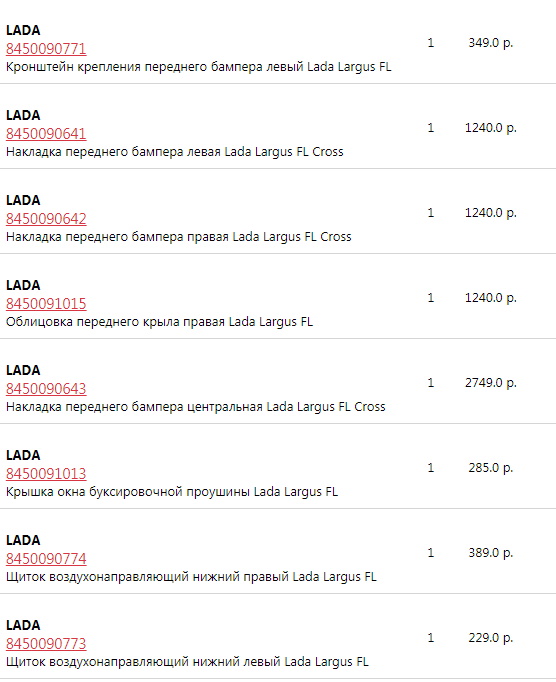 Хром, расширители переднего бампера, замок капота, проводку, подкрылки передние, подрамник. Вообще все, что связано с новой X-внешностью сложно доставать, и это касается всего поколения ВАЗ, не только Ларгуса.