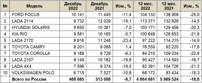 Аналитические агентства подвели итоги 2022 года. Согласно данным статистики компаний, за прошедший год в России было продано от 4 864 700 до 5 482 792 легковых автомобилей с пробегом. Половина всех купленных б/у машин пришлась на пять марок. В рейтинг попала LADA.