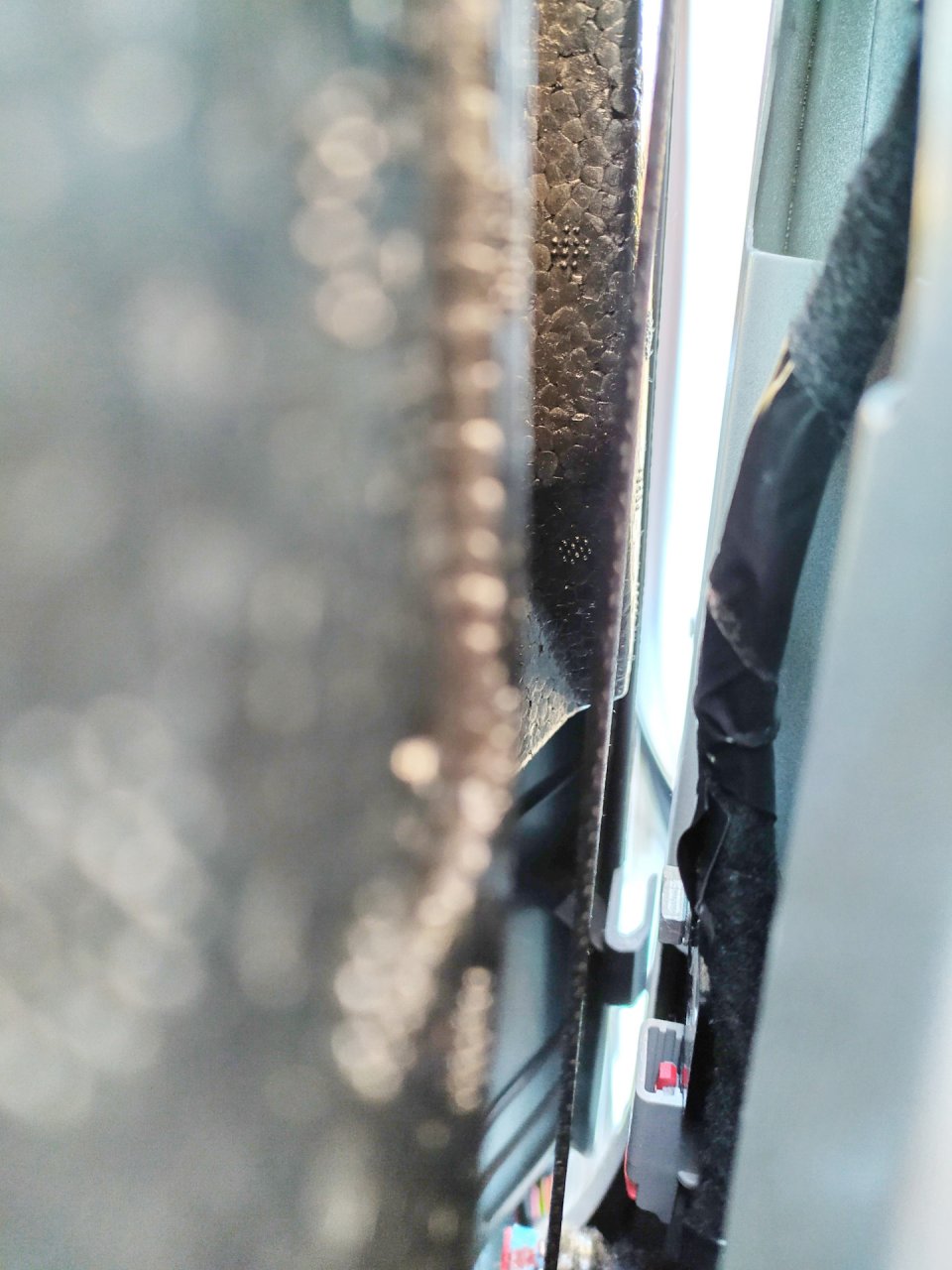 Чтобы проверить возможное несоответствие следует снять облицовку средней стойки кузова (левый борт). Их следует демонтировать при предварительно снятых облицовках порогов (инструкция):
