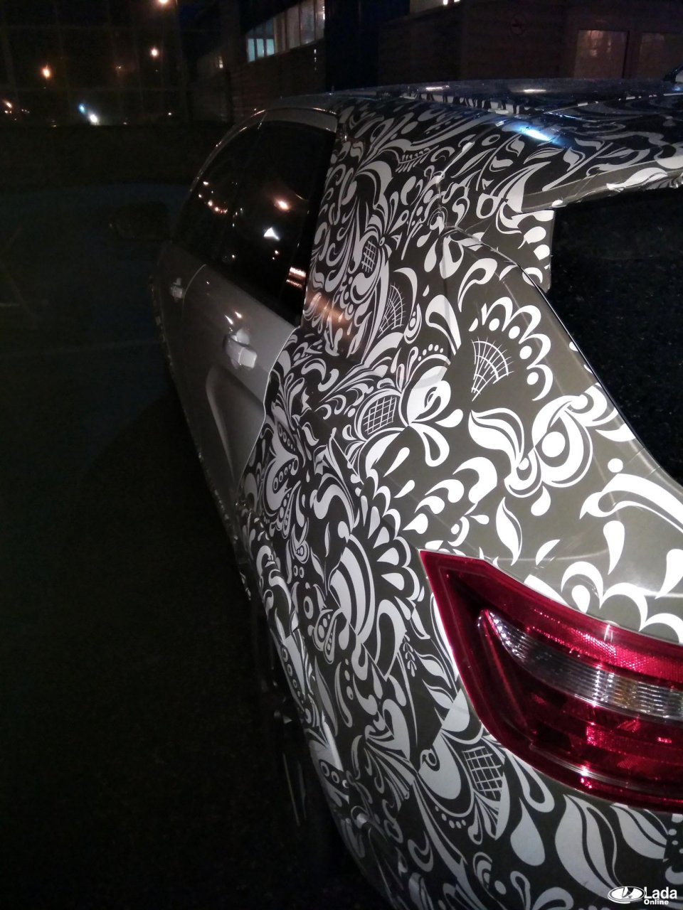 UPD 22.03.17: Снимки были сделаны на Южном шоссе в Тольятти одним из пользователей социальной сети «ВКонтакте». Универсал LADA Vesta, попавший в объектив, оклеен камуфляжной пленкой, выполненной в цвете «Лайм» с нанесенным узором.