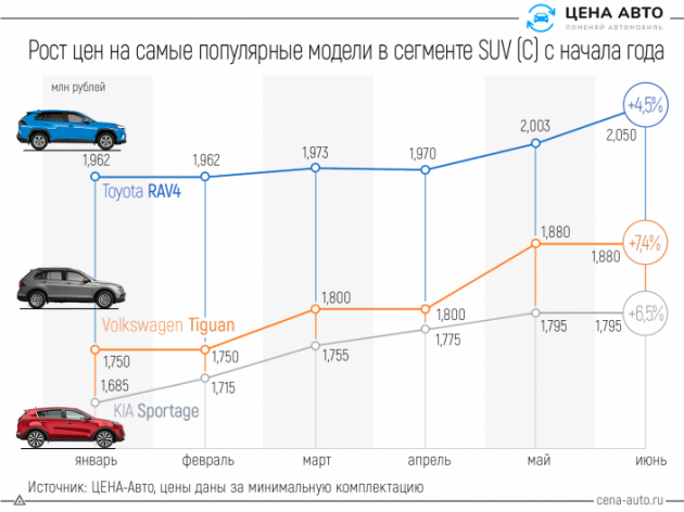 Лидер по увеличению цены - Infiniti QX50, с 1 июля автопроизводитель поднял стоимость этой модели на 5,23%. Второе место в рейтинге занимает Lada Niva Legend (5 дв.), внедорожник прибавил в цене на 4,44%. Замыкает тройку лидеров Volkswagen Tiguan (+3,68%).