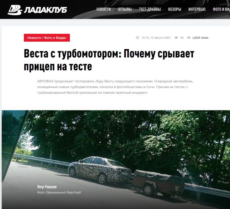 Практически сразу эта информация появилась на ОФИЦИАЛЬНОМ Лада Клубе, новость назвали «Веста с турбомотором: Почему срывает прицеп на тесте».