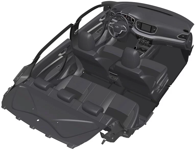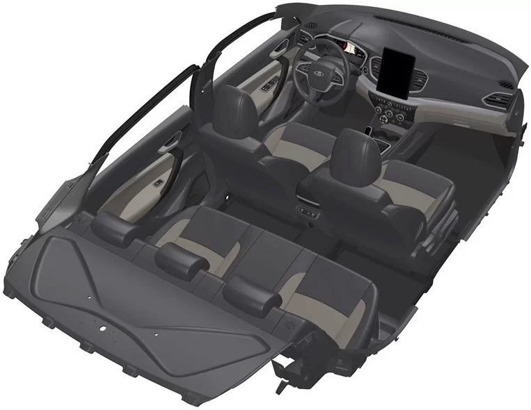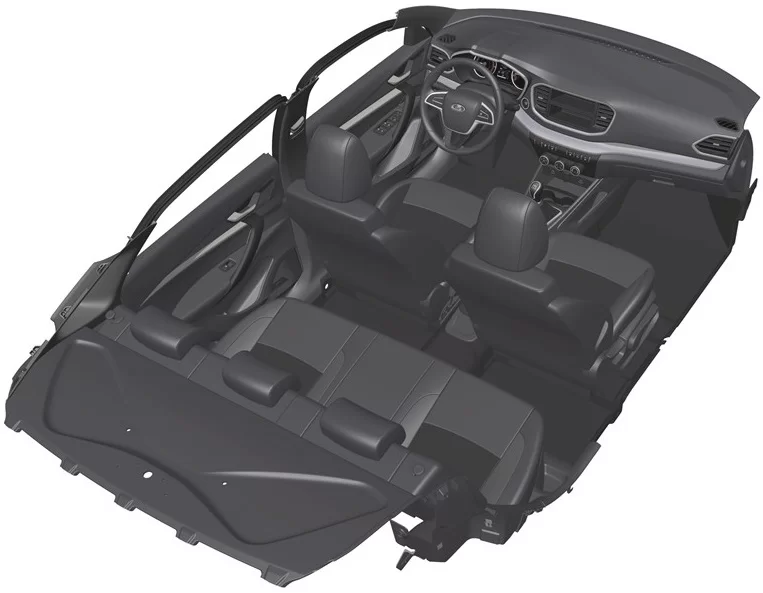 Обн.10.06.2022: В ходе регулярного мониторинга базы Федерального института промышленной собственности сайту Лада.Онлайн удалось обнаружить новые промышленные образцы, которые могут принадлежать Lada Vesta FL. В качестве правообладателя указано АО "АВТОВАЗ". На фото rомплект обивок передних и задних дверей легкового автомобиля.