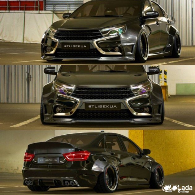 Российский дизайнер Касим Тлибеков представил, каким может выглядеть Лада Веста после серьезного тюнинга. Свои представления он реализовал в нескольких проектах.