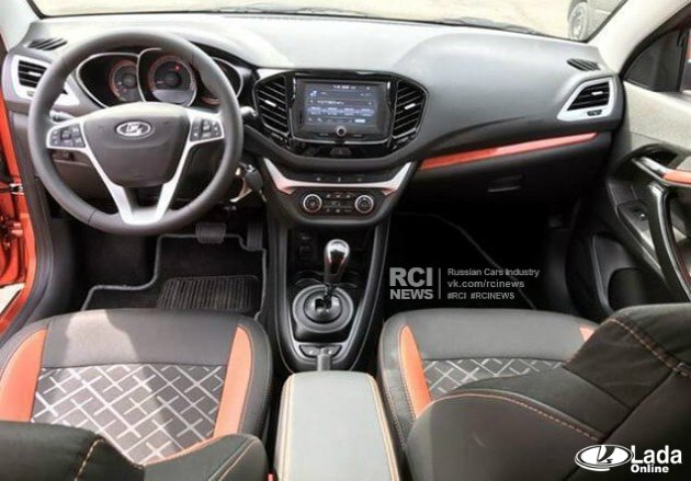 Для универсала Лада Веста кросс дизайнеры специально создали яркую оранжевую цветовую гамму в оформлении интерьера. Также салон универсала может быть оформлен в сером цвете. Кроме яркой расцветки можно заметить ряд опций, которых не было ранее. Например, трехступенчатая регулировка подогрева передних сидений, центральная консоль с подлокотником и ящиком для хранения, оснащенная портом USB, розеткой и кнопками подогрева задних сидений, задний центральный подлокотник с подстаканниками. Пространство над головами задних пассажиров увеличено на 2,5 см, а спинка заднего дивана складывается в соотношении 1/3 к 2/3.