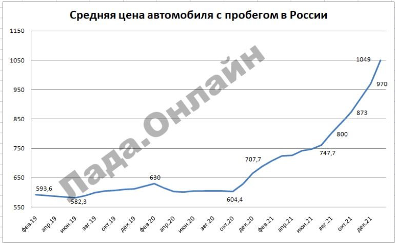 Средняя цена* подержанного легкового автомобиля в январе 2022 года составила 1 млн 049 тысяч рублей. Таким образом, по данным агентства «АВТОСТАТ», этот показатель впервые преодолел 1-миллионную отметку.