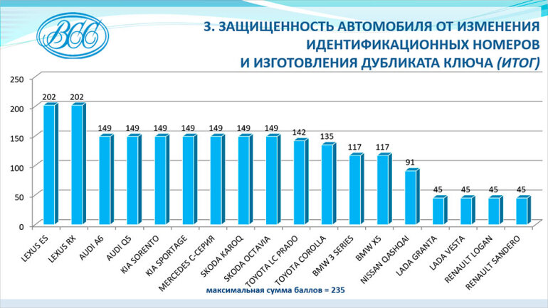 Эксперты провели испытания в соответствии с методическими материалами «Критерии и методика оценки эффективности штатной защиты автомобиля от угона», разработанными ВСС. Проверку проводили по трем основным направлениям: