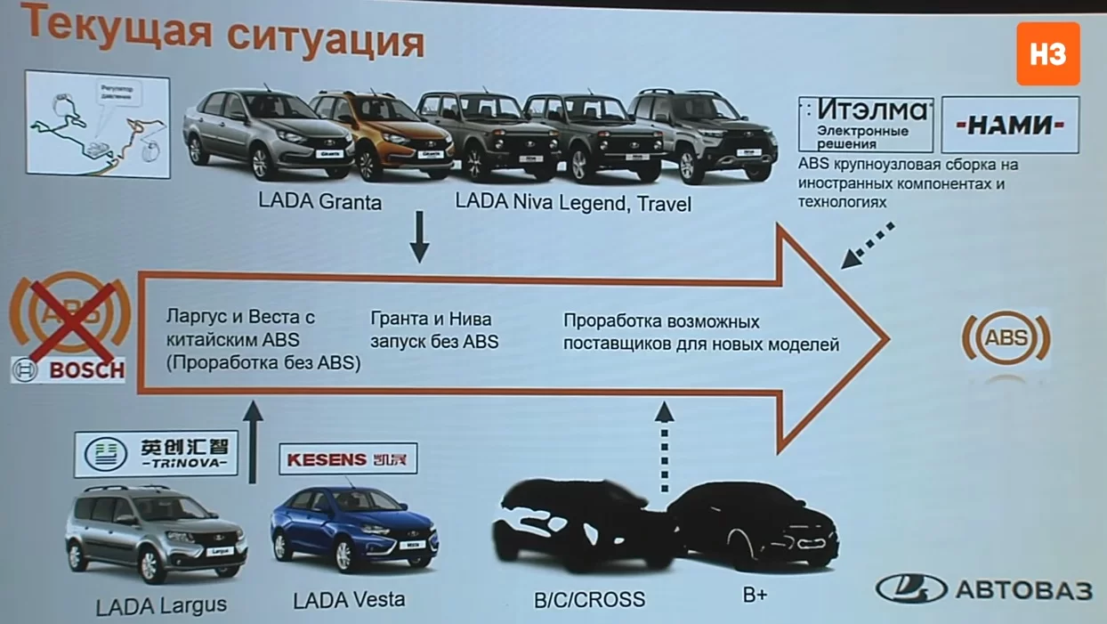Один из ключевых компонентов из-за которого приостанавливается сборка автомобилей LADA является антиблокировочная система тормозов (АБС). До введения ограничивающих санкций ABS для АВТОВАЗа поставляла немецкая фирма Bosch. Теперь «Бошу» найдены альтернативные поставщики из дружественных стран.