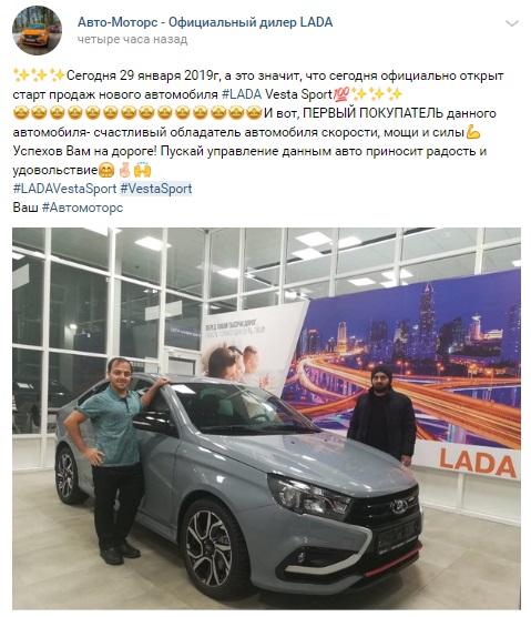 Обн.19.12.2018: Старт продаж LADA Vesta Sport планируется на январь 2019 года. Об этом написал один из официальных дилеров LADA в ВКонтакте.
