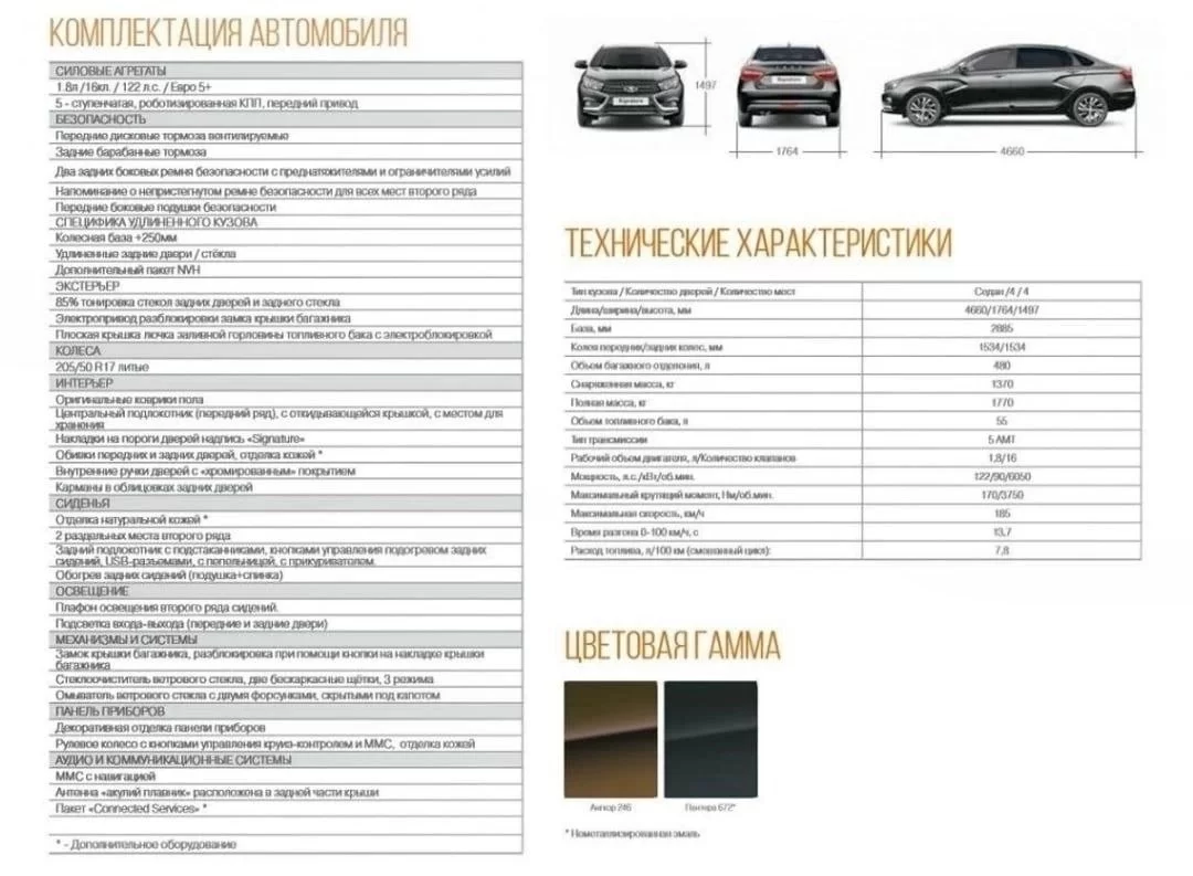 Lada Vesta Signature оснащается 1.8-литровым мотором (122 л.с.) со сниженными механическими потерями и вибрациями, АМТ, а также доп. шумоизоляцией и перенастроенной подвеской.