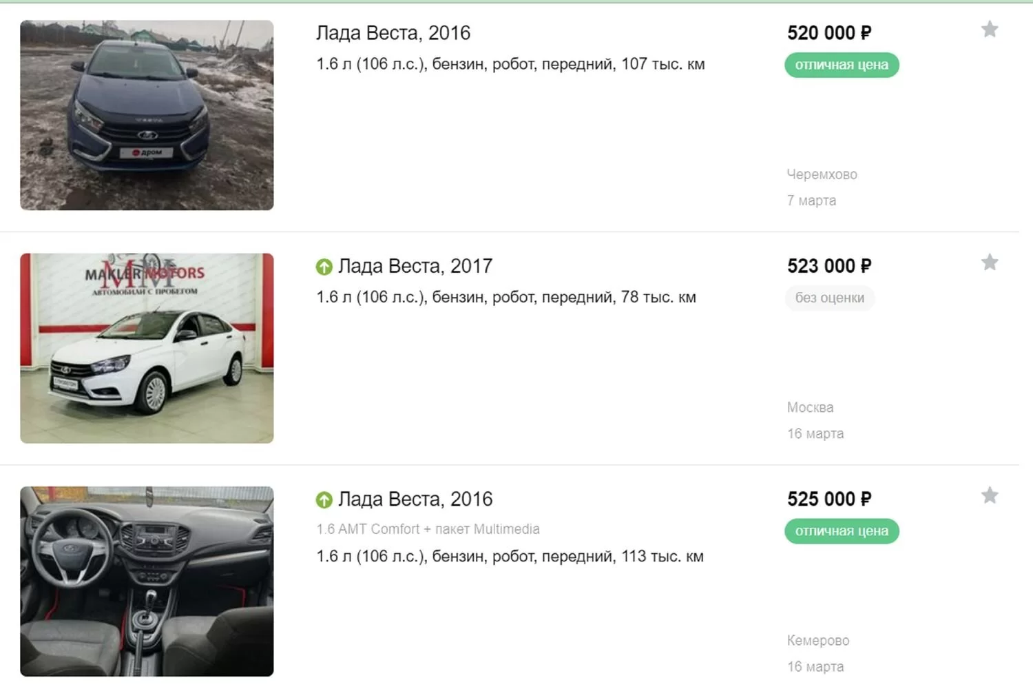 Для покупки Весты с вариатором нужно не меньше 800 000 рублей. За самые дорогие экземпляры просят более 2 000 000 рублей.