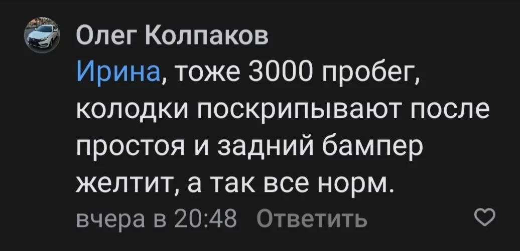 На пробеге 8000 начали жутко скрипеть передние колодки (заднее левое колесо при торможении скрипело с новья, но это не суть) ну так вот, поехал к товарищу в сервис, подняли машину и оказалось что теперь на новой Vesta NG стоят китайские суппорта (и перед и зад) неизвестной даже дилеру фирмы, но это не самое печальное, суть в том что на эти суппорта нет колодок от слова "нигде", как выяснилось даже на самом заводе. Дилеры даже не в курсе что на машине стоят другие суппорта. В общем колодок у меня хватило ровно на 11000 пробега (после удаления ограничителей, то есть в ноль), поиски колодок через дилера, посредством ручного подбора (перебирали штук 200) в магазине, в интернете не дали никаких результатов. В общем заменил передние суппорта + шланги (шланги от новых суппортов на старые не подходят) от веста 18 года других вариантов не нашёл (был вариант стачивать максимально похожие). На заметку владельцам VESTA NG 2023 (2022 думаю стоят старые суппорта).