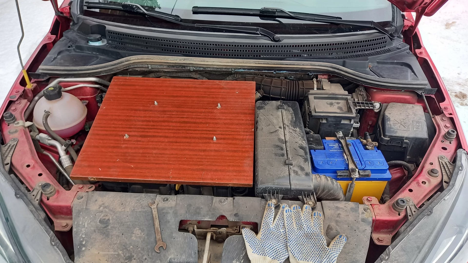Другая его доработка — самодельная крышка двигателя, которую он сделал из дерева.