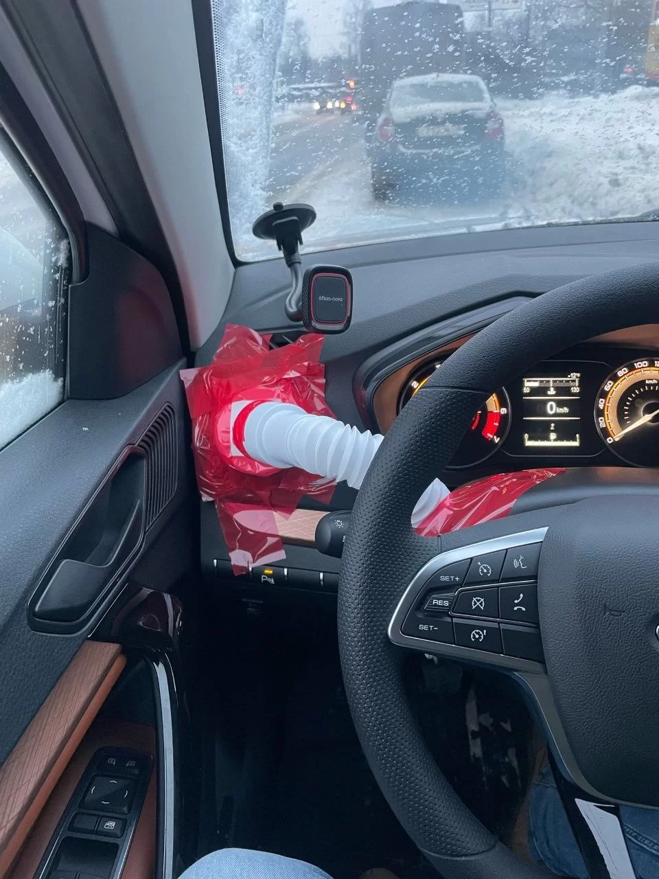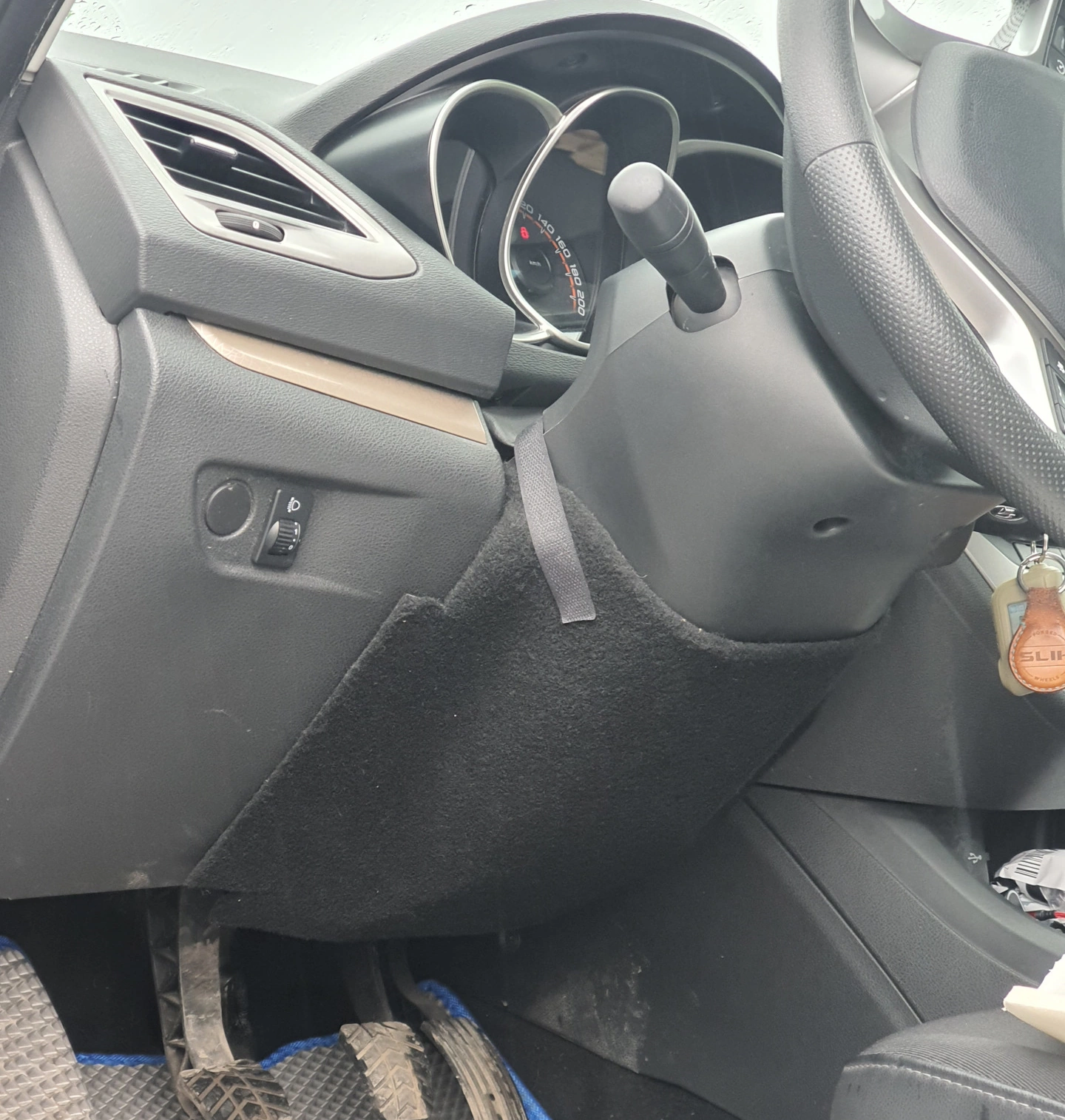В этом примере владельцу не удалось победить холод в ногах при движении в автомобиле зимой в -5-20 С°. Он понял, что холод идёт от металлических частей рулевого вала. Для решения проблемы он решил радикально утеплить эту часть автомобиля rускjv ковролина:
