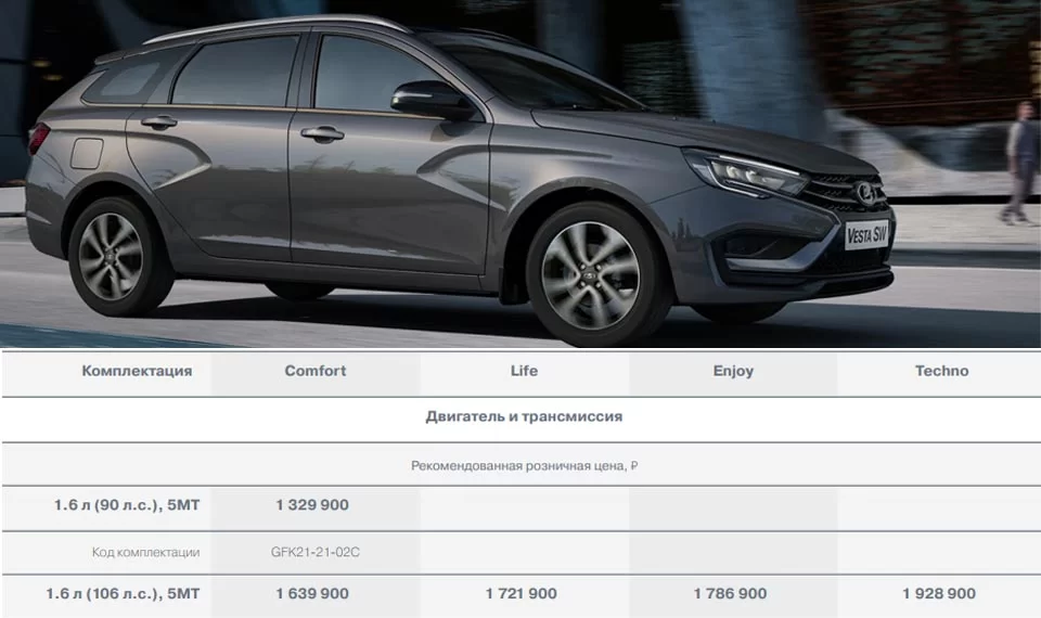 Комплектации и цены (РРЦ) на LADA VESTA SW: