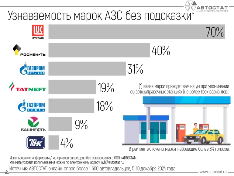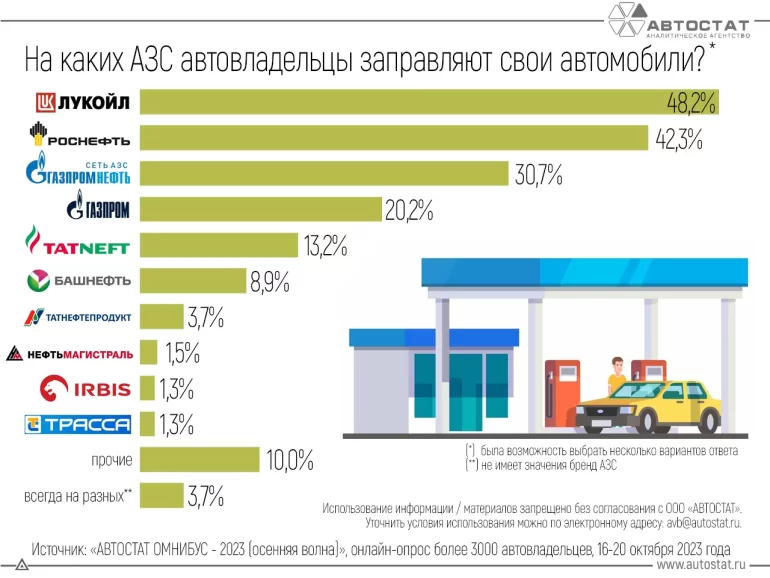 Специалисты агентства «АВТОСТАТ» решили узнать, на каких АЗС россияне предпочитают заправлять свои автомобили. С этой целью был проведен онлайн-опрос среди россиян.