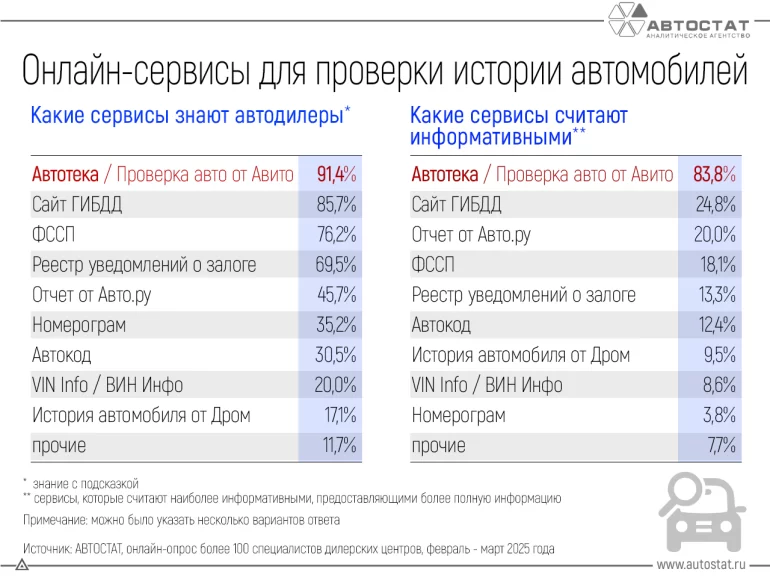 - Автотека также считается самым информативным сервисом — 83,8% дилеров отметили ее как наиболее полную.