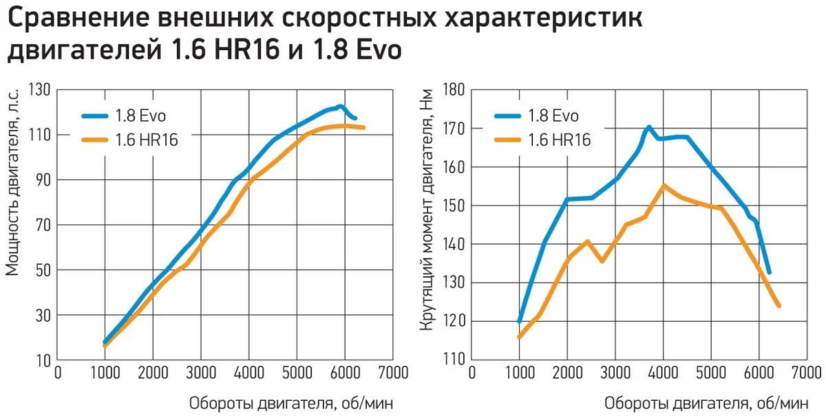 Модернизированный вазовский мотор 1.8 Evo и по мощности, и по крутящему моменту превосходит ниссановский двигатель HR16, который до 2022 года собирали в Тольятти и ставили на двухпедальные Весты