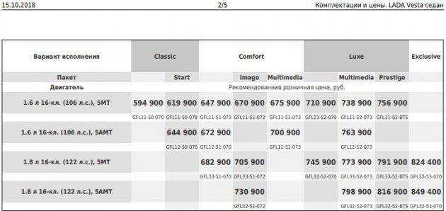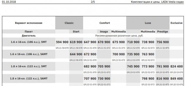 Новый вариант исполнения Lada Vesta Comfort имеет код GFL32-51-070. Эта версия автомобиля имеет под капотом 1.8-литровый двигатель, который работает в паре с автоматизированной механической коробкой передач (АМТ). Стоимость комплектации - 707 900 рублей.
