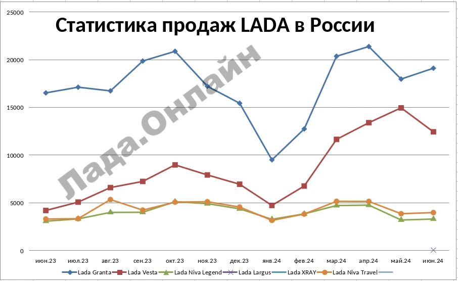 В модельном рейтинге лидерство все так же принадлежит отечественному семейству LADA Granta – эти автомобили в первый летний месяц были реализованы в количестве 16 009 единиц. Это почти на 1% больше, чем в июне 2023-го. На втором месте – семейство LADA Vesta с результатом 11 590 единиц.