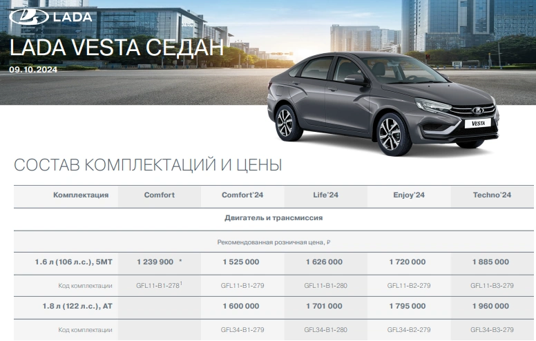 Таким образом, самая доступная Веста с системой стабилизации сейчас это Comfort'24, рекомендованная розничная цена (РРЦ) этого автомобиля 1 525 000 рублей.