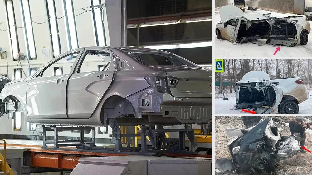 Некоторые владельцы приводят другие подобные фотографии Вест после ДТП и считают, что причина в недостаточной надежности сварных швов кузова.