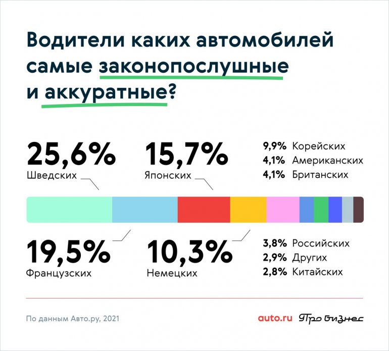 На втором месте — водители Lada, которые получили втрое меньше голосов. Водителей массовых Hyundai и Kia неаккуратными в сумме назвали 6 процентов респондентов. Ещё 4 процента опрошенных недолюбливают водителей на машинах Toyota, и, судя по комментариям к голосованию, речь идёт о владельцах Camry и Land Cruiser.