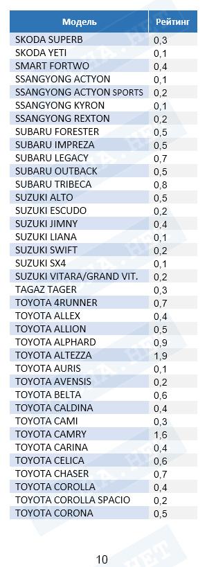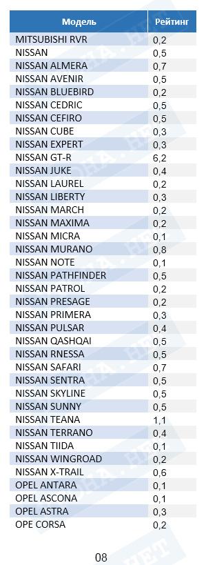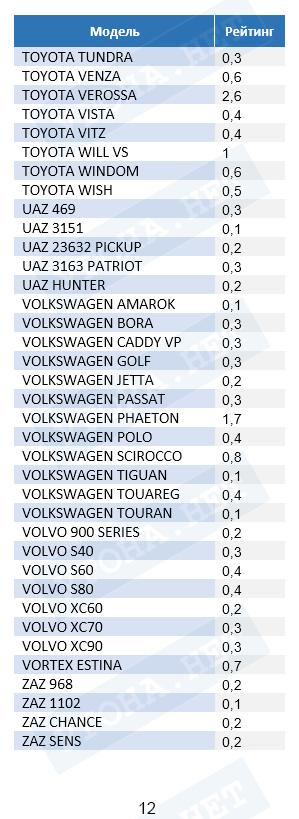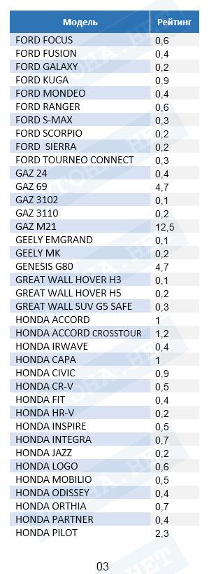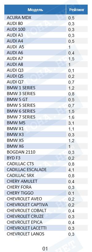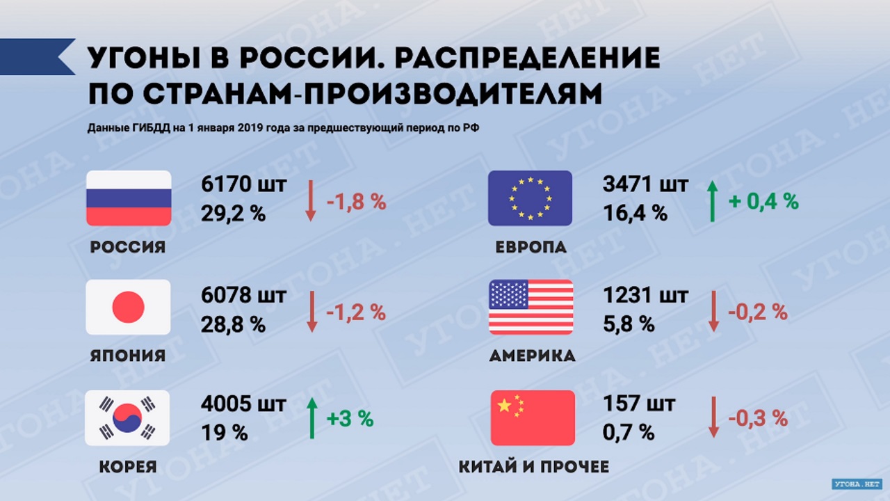 Сайт Угона.Нет опубликовал рейтинг угонов легковых автомобилей в России за 2018 год. Эксперты произвели расчеты и определили относительное количество угонов. Другими словами они посчитали количество моделей в автопарке РФ и спроецировали на них объем угнанных за последний период времени и получили удельный вес угонов по маркам и моделям авто. Иными словами кол-во угонов на 1000 машин модельного парка.