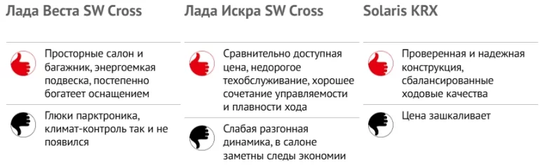 | Модель | Solaris KRX | Лада ВестаSW Cross | Лада ИскраSW Cross |