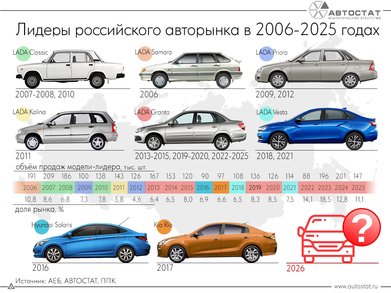 За последние 8 лет именно Granta и LADA Vesta пользовались наибольшей популярностью у жителей РФ. До этого, в 2016–2017 годах, их симпатии оказывались на стороне «корейцев» — Hyundai Solaris и Kia Rio. И это были единственные случаи в истории российского рынка, когда его лидерами становились иномарки. До «корейцев» бестселлерами были модели LADA, которые в настоящий момент уже сняты с производства.