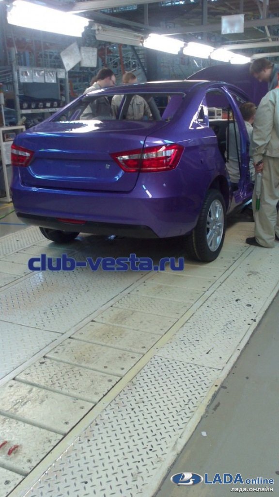 Фотографии, сделанные во время сборки Лада Веста на заводе «ИжАвто» опубликовал портал Club-Vesta.ru. На одном снимке изображен автомобиль в темно-синем цвете, на других фото показаны некоторые детали интерьера новинки. Сообщается, что автомобиль на фото представлен в «средней» комплектации.