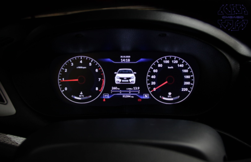 Обн.22.01.2020: Разработки группы CMGAISD по созданию электронной комбинации приборов близки к завершению. Панель уже испытывается на машине, дорабатываются последние недочеты. Будет представлено две версии: дешевая (цена будет около 15 000 рублей) и подороже. Бюджетный вариант можно будет купить уже в феврале - марте, а продажи ТОП версии приборки запланированы на апрель - май этого года.