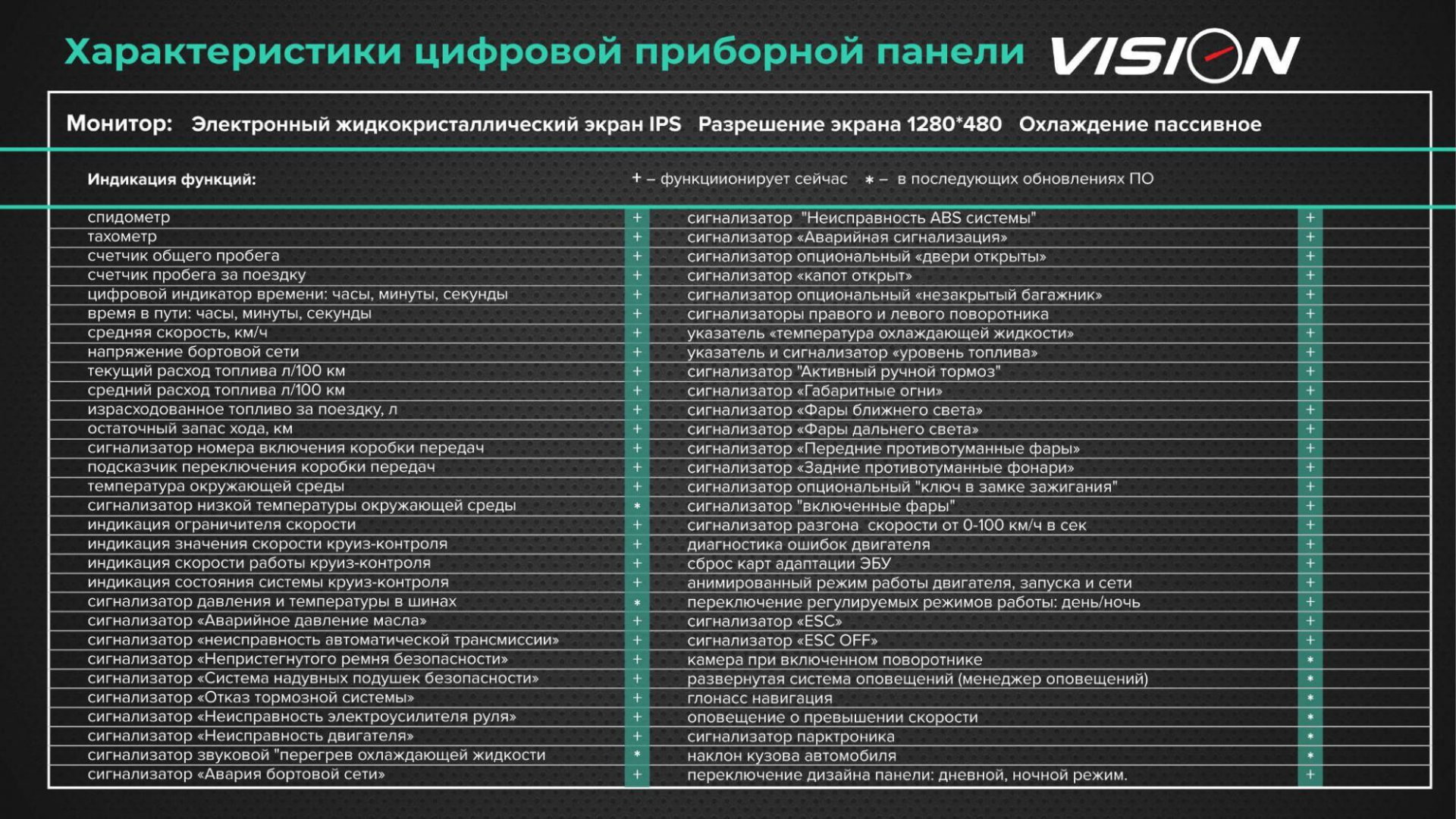 13. Обн.22.01.2020: Разработки группы CMGAISD по созданию электронной комбинации приборов близки к завершению. Панель уже испытывается на машине, дорабатываются последние недочеты. Будет представлено две версии: дешевая (цена будет около 15 000 рублей) и подороже. Бюджетный вариант можно будет купить уже в феврале - марте, а продажи ТОП версии приборки запланированы на апрель - май этого года.