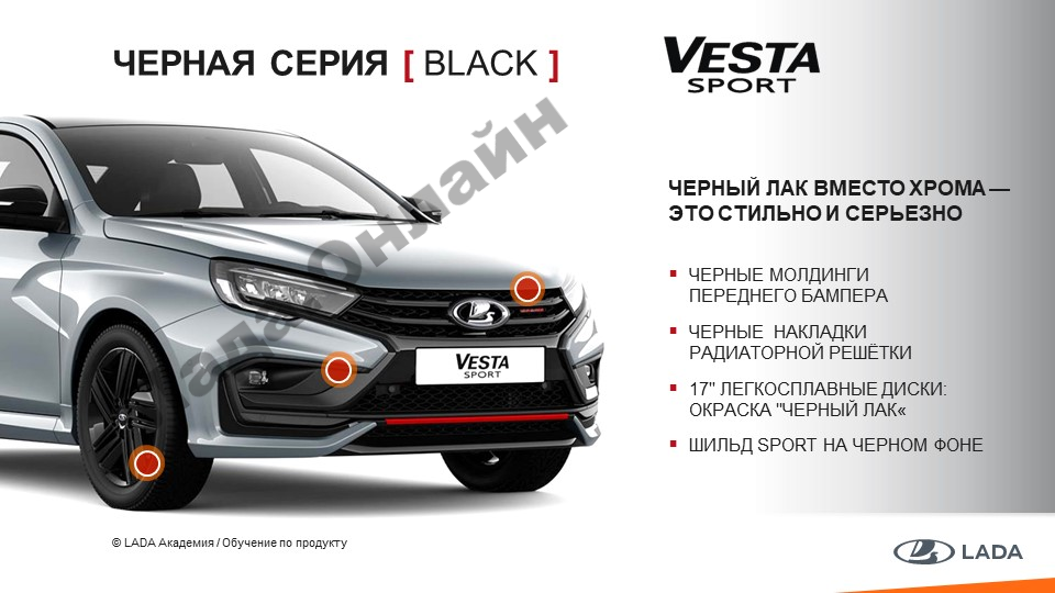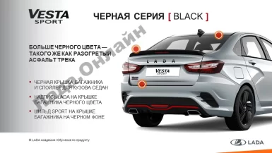 Новое поколение Lada Vesta Sport представлено в двух комплектациях: обычной и [BLACK]. В специальной черной версии модели ряд элементов экстерьера окрашены в черный цвет. Более подробно об этом версии исполнения АВТОВАЗ рассказал в презентации завода, с которой ознакомился сайта Лада.Онлайн.