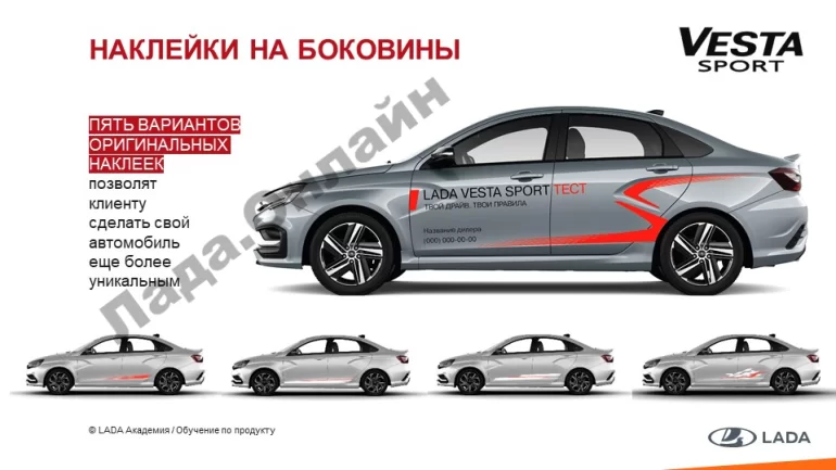 Кроме этого клиентам предложено пять вариантов оригинальных наклеек, которые позволяют сделать автомобиль еще более уникальным.